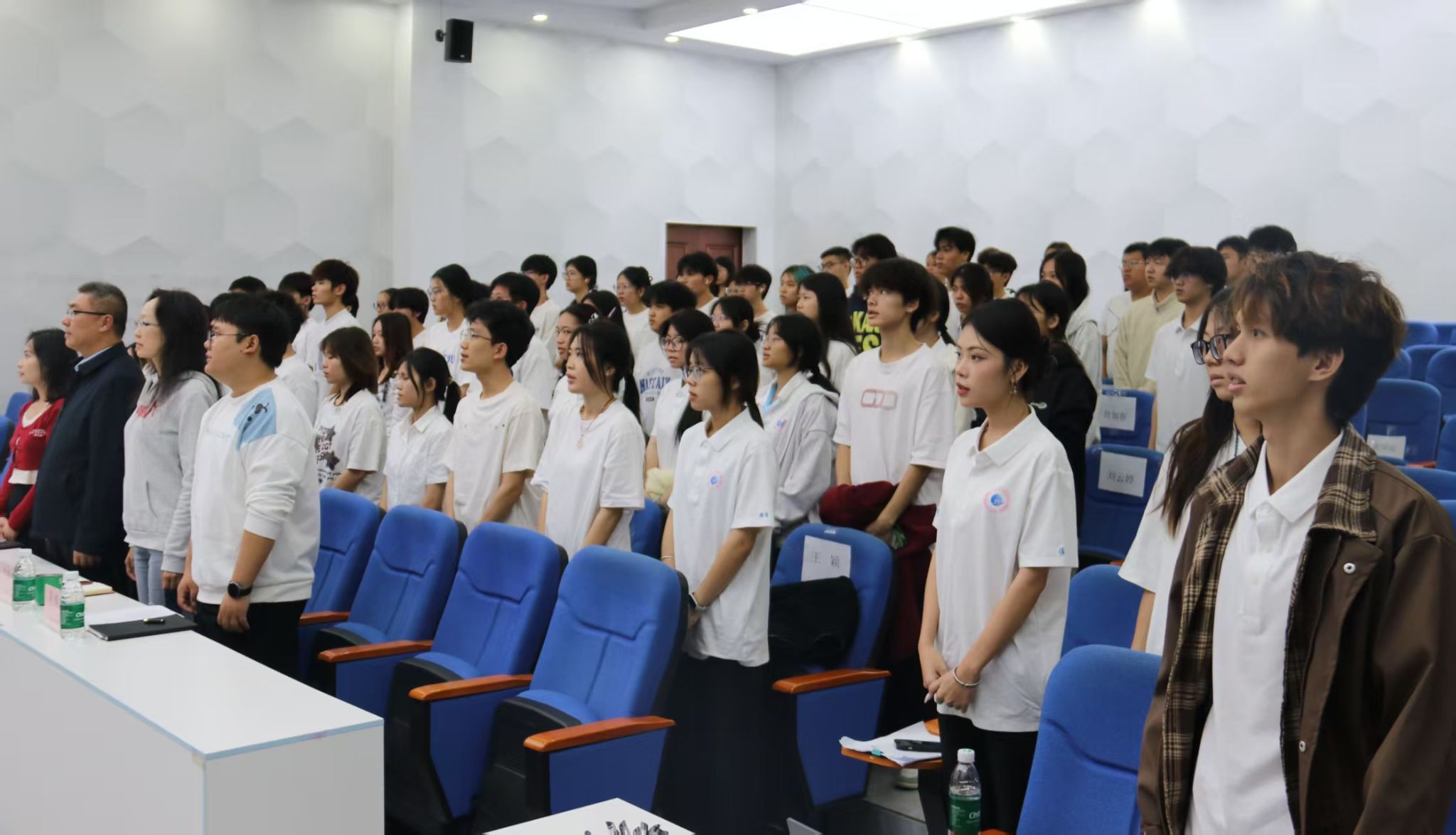 随后,激昂的国歌声奏响,全体参会人员肃立致敬,以庄严赤诚的姿态为本次学代会拉开序幕。