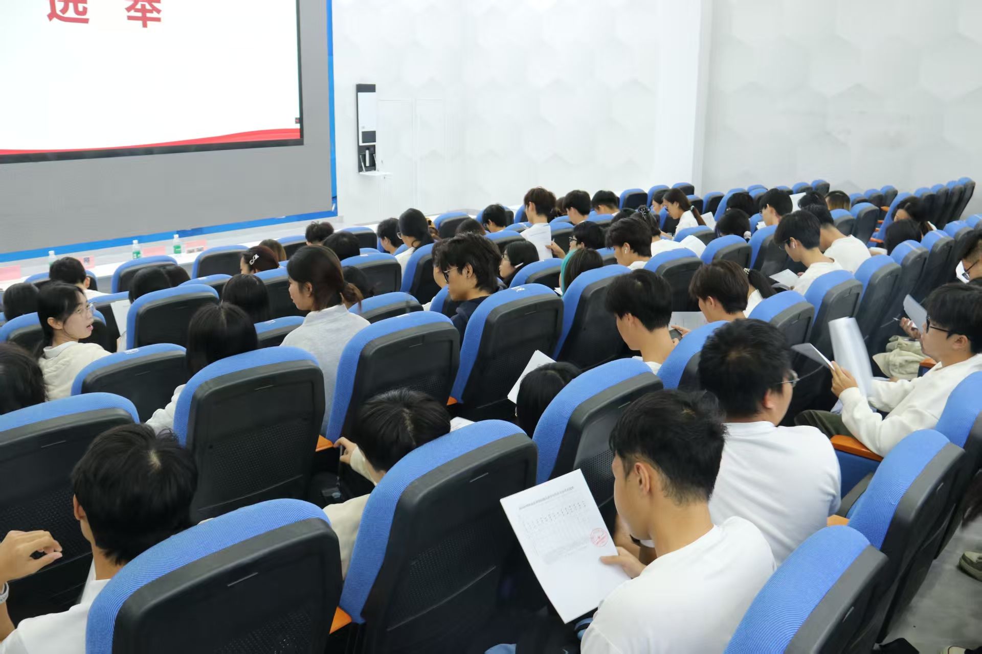 工作报告宣读完毕后,进入代表审议环节。全体学生代表围绕报告内容认真研讨、积极建言,充分履行代表职责。随后,主持人宣读大会选举办法,明确选举流程与规则。在吴佳华老师的有序主持下,选举环节规范开展,现场秩序井然,全体代表以严肃负责的态度参与投票,确保选举工作公平公正、顺利推进。