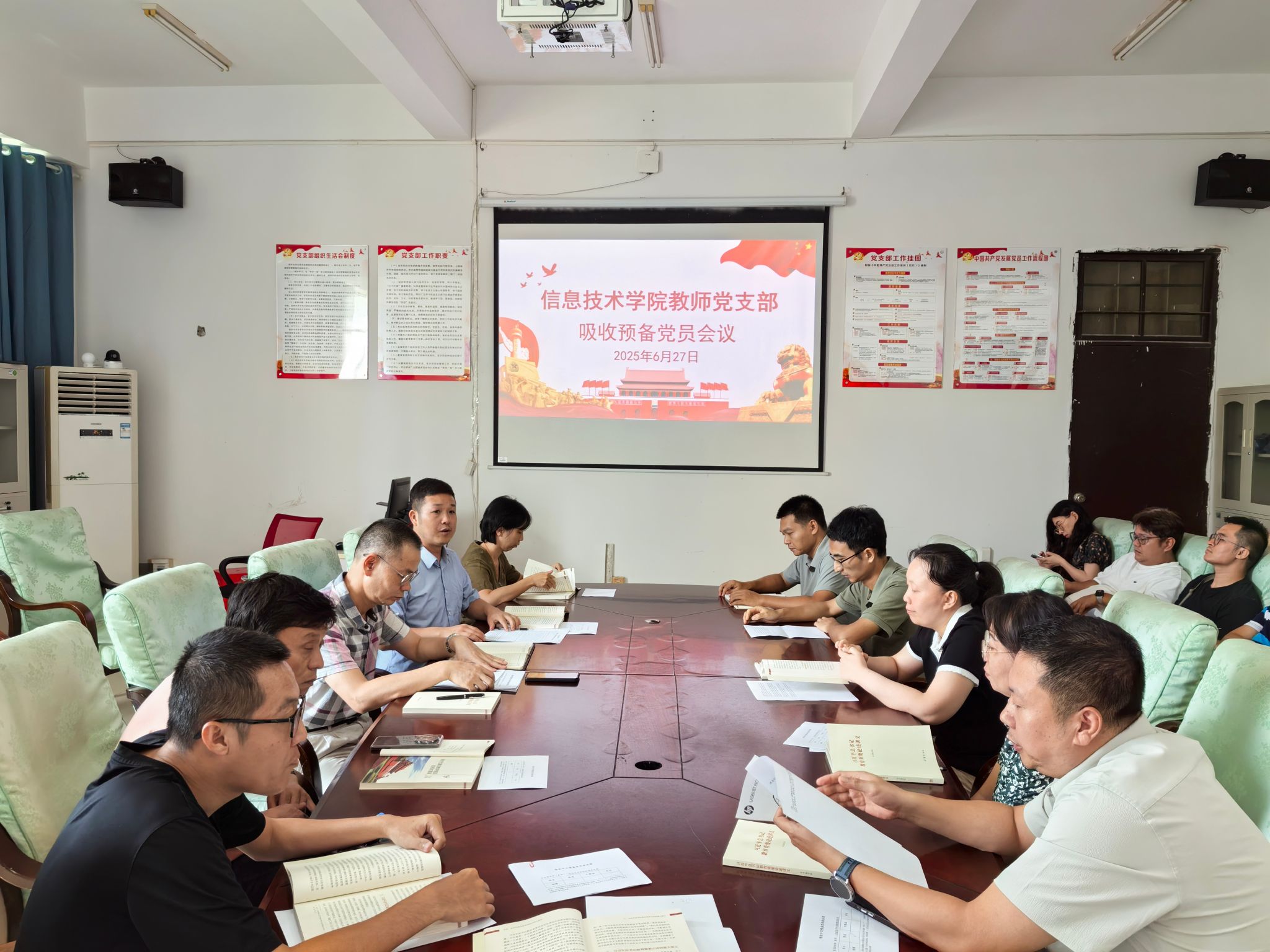 2025年6月27日,信息技术学院教师党支部在4-213会议室召开全体党员大会,严格按照组织程序讨论并通过了吸收杨博同志为中共预备党员的决议。此次会议由党支部书记康东同志主持,全体党员参与表决,党总支委员王忠、单继周同志列席监督。