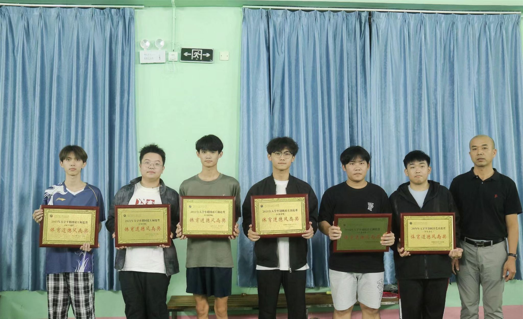 终场哨响,信息技术学院代表队以3:0的绝对优势连胜三局锁定冠军,不仅捧起沉甸甸的冠军奖杯,更凭借文明参赛、尊重对手的风范,斩获“体育道德风尚奖”。队员们高举双臂庆祝,手捧奖杯与荣誉证书,脸上洋溢着激动与自豪,现场掌声与欢呼声交织,气氛达至顶峰。