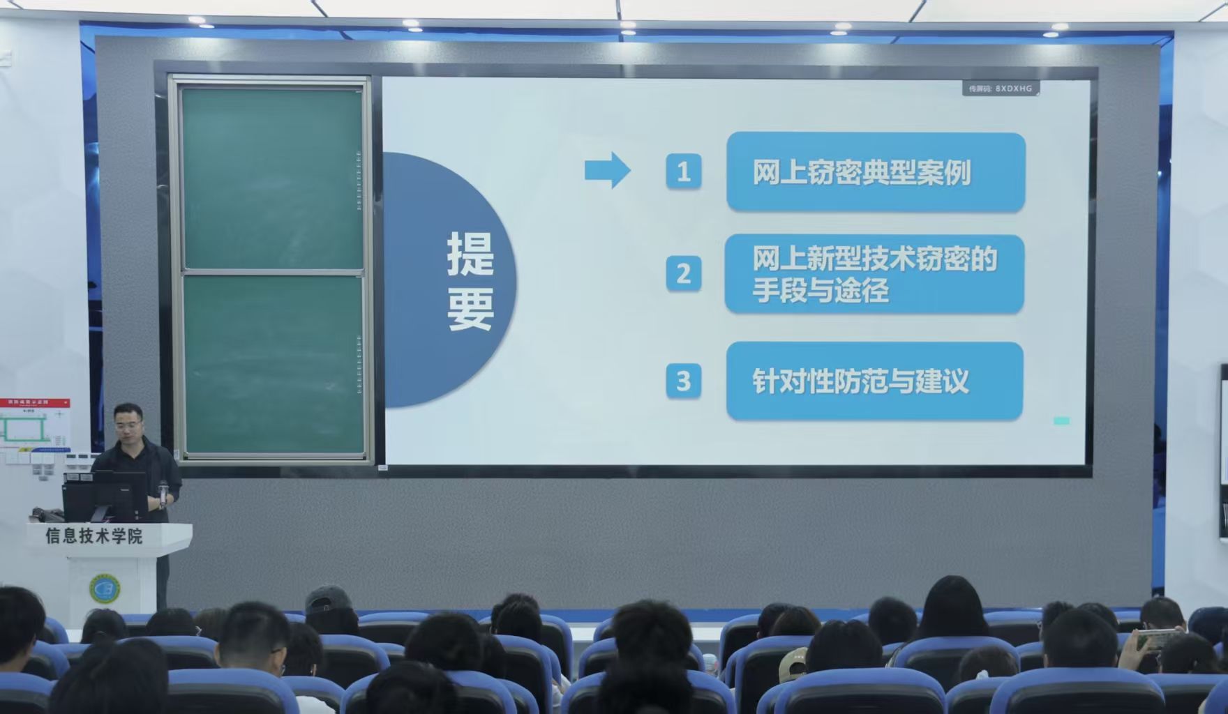 为提升2025级新生网络安全意识,防止校园内再次出现学生因随意扫码、连接不明WiFi泄露个人信息等安全事件,10月21日下午,信息技术学院特邀海南大学郭渊博教授,在4-215教室举办“网络新型攻击窃密手段及对策”专题讲座,信息技术学院全体2025级学生到场参加。
