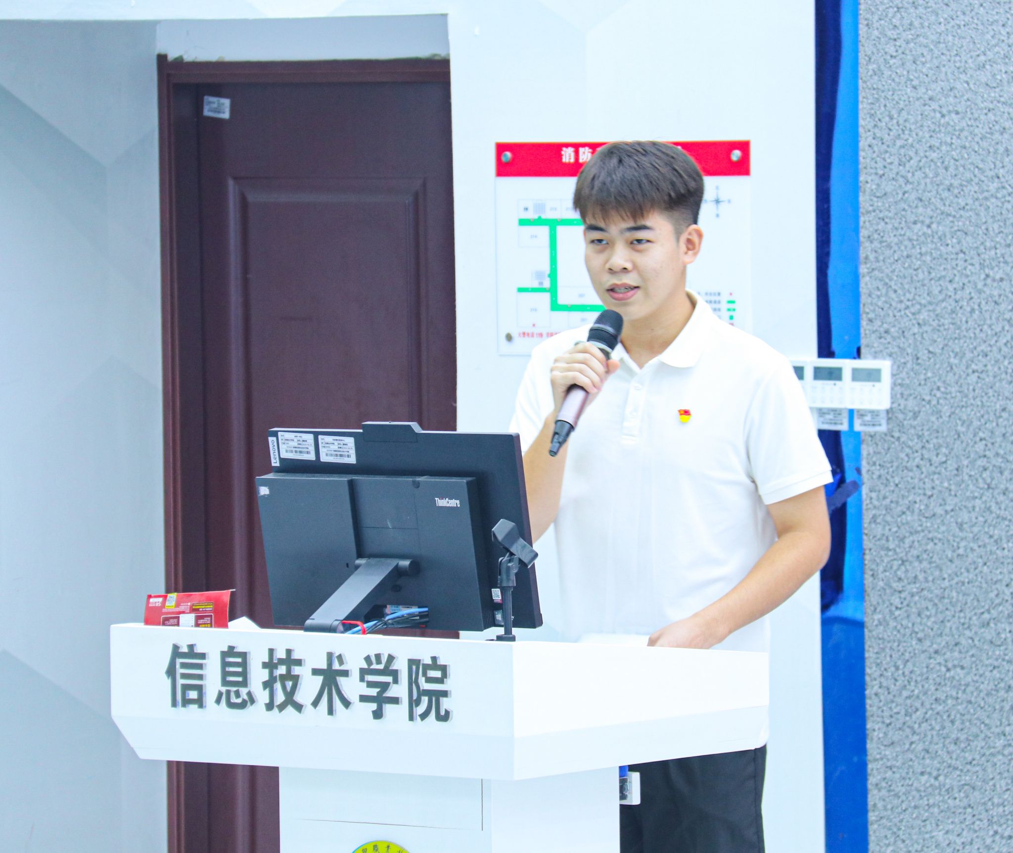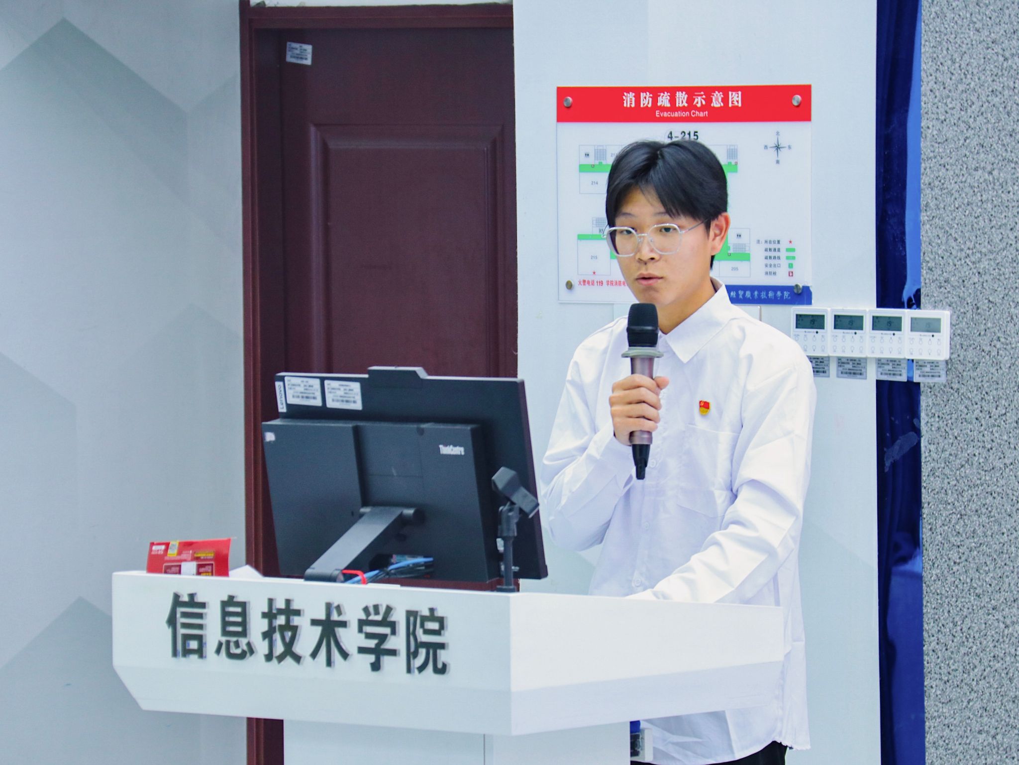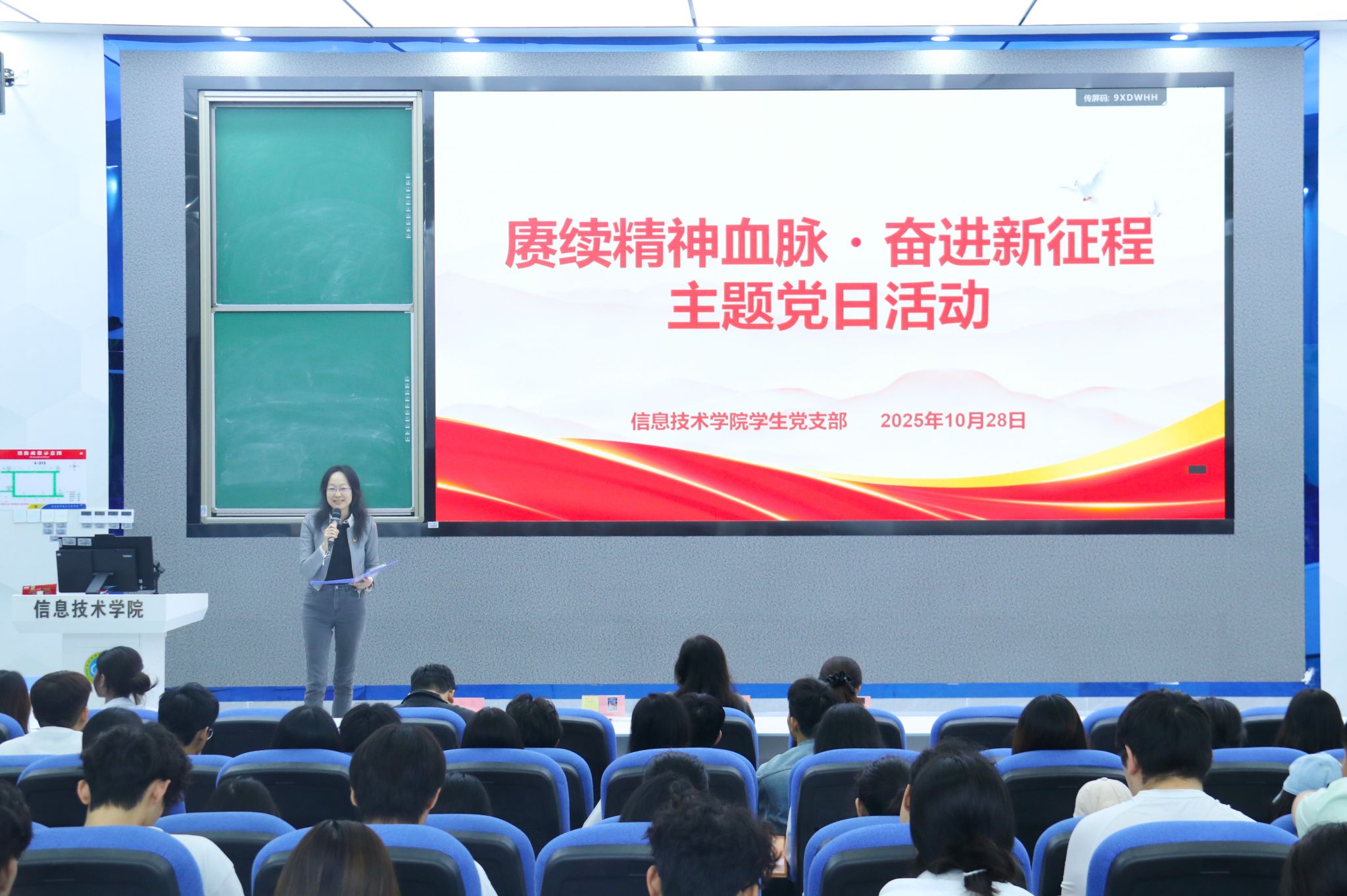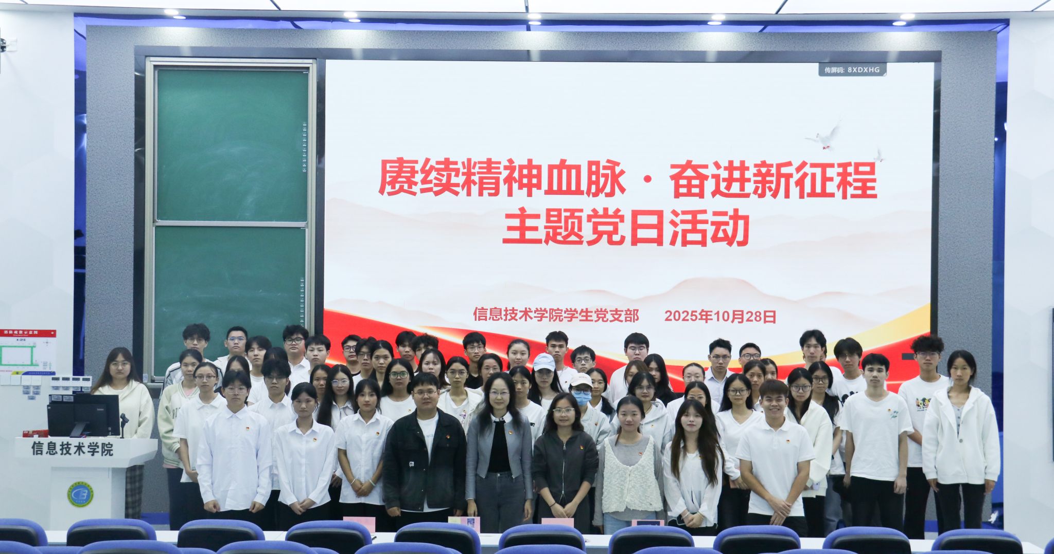 10月28日,信息技术学院学生党支部在4-215教室举办“赓续精神血脉,奋进新征程”主题党日活动。学生党支部书记代晓明及辅导员蔡守正、吴佳华、吴淑亲出席活动,学院全体学生党员、入党积极分子参与活动。