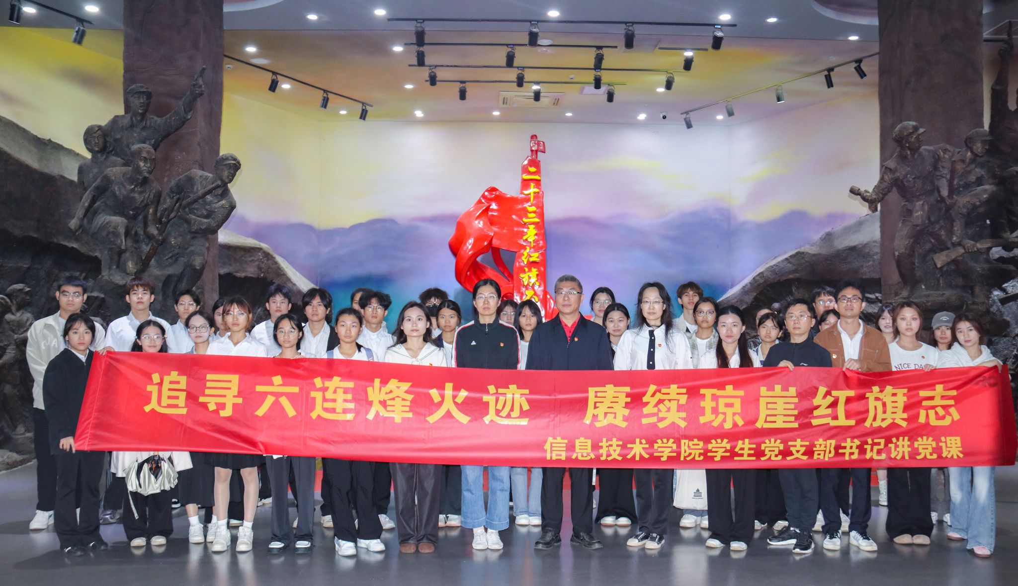 为传承红色基因、厚植家国情怀,深化对海南自由贸易港建设的认知,11月15日,信息技术学院党支部以“追寻六连烽火迹 赓续琼崖红旗志”为主题,在六连岭革命根据地陈列馆开展讲党课系列活动,党总支副书记黄守官老师、教师党支部委员林阳老师、学生党支部书记代晓明老师、团总支负责人蔡守正老师、吴佳华老师、吴淑亲老师、陈彬老师、杨晓楠老师及学生党员、预备党员、团员代表共同参加,活动由林雪、符君同学主持。