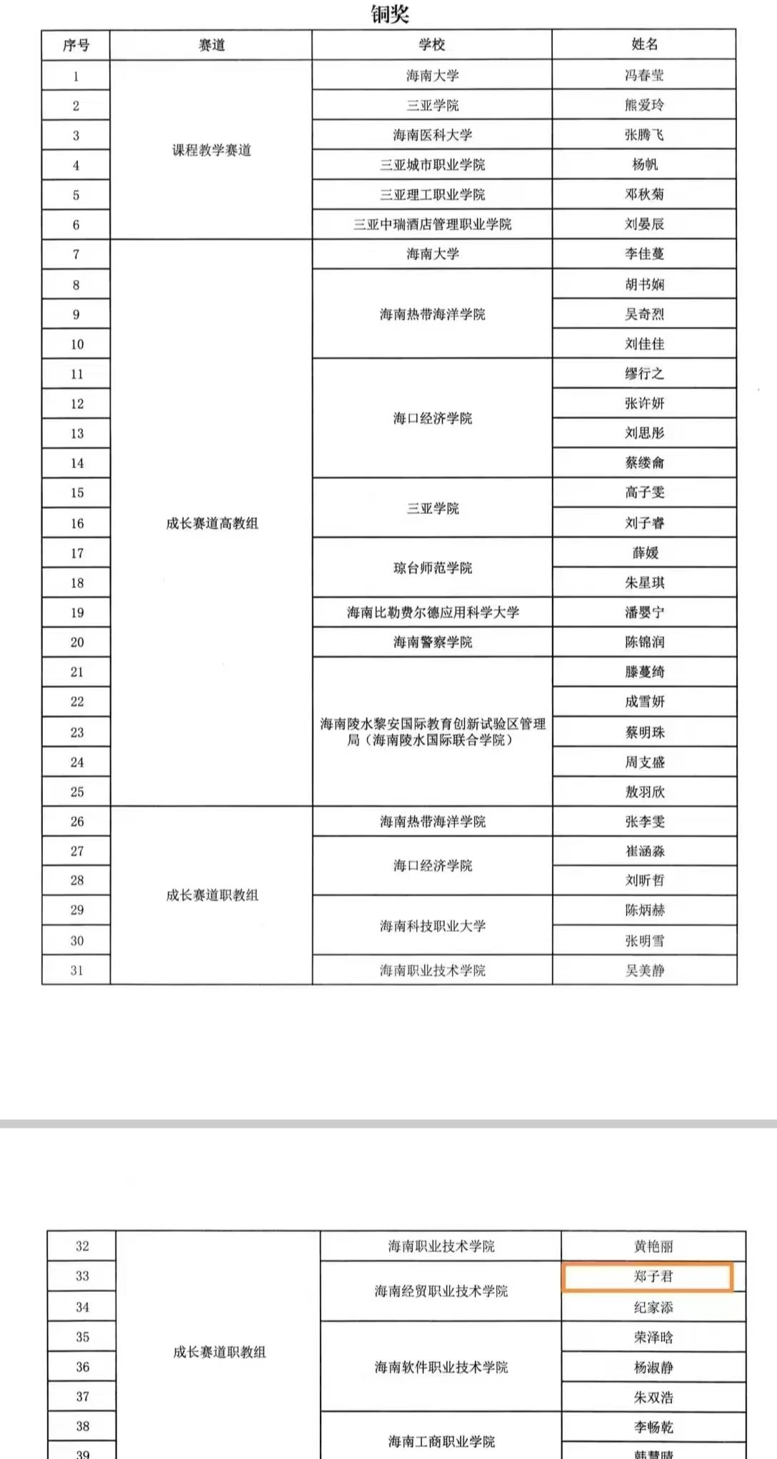 在近日刚刚公布的第三届全国大学生职业生涯规划大赛海南赛区决赛获奖名单中,我院学子刘佳、郑子君两位同学凭借扎实的专业素养、清晰的职业规划和出色的临场表现,从全省众多参赛选手中脱颖而出,分别斩获省赛银奖和铜奖,创造了信息技术学院学生参加大学生职业生涯规划大赛的最好成绩。