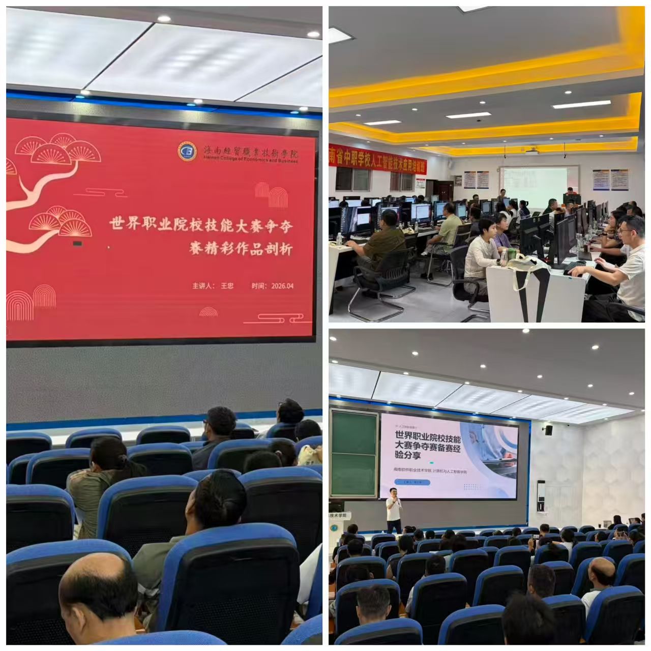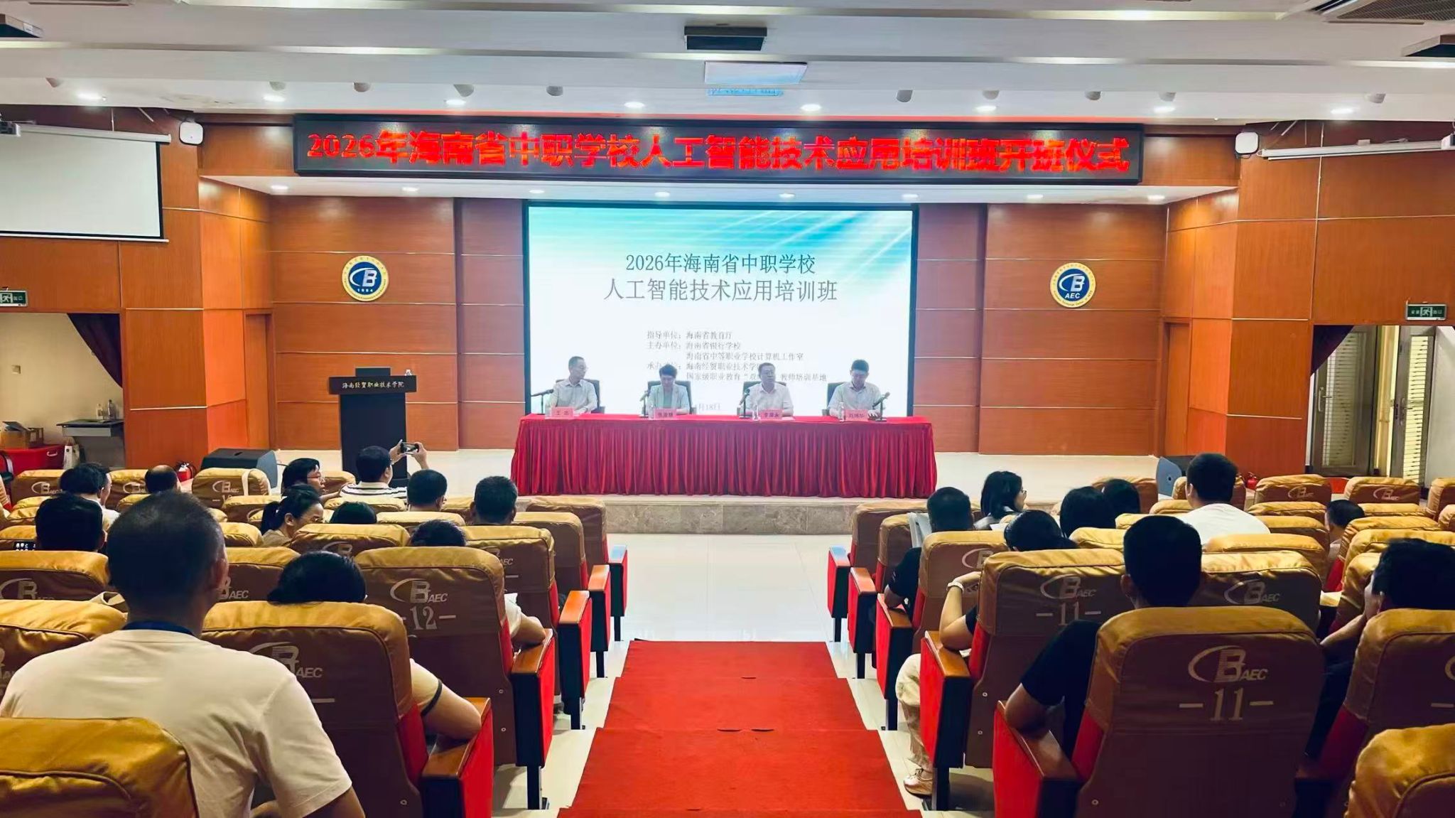 为顺应人工智能与教育深度融合发展新趋势,提升我省中职教师人工智能技术应用与技能竞赛水平,4月17日至19日,由海南省教育厅指导,海南省银行学校、海南省中等职业学校计算机工作室联合主办,海南经贸职业技术学院信息技术学院承办的2026年海南省中职学校人工智能技术应用培训班在海南经贸职业技术学院顺利举办。来自全省各中职学校的专业教师80余人齐聚一堂,以学促能、以技提质,共赴AI赋能职教教学的学习盛宴。