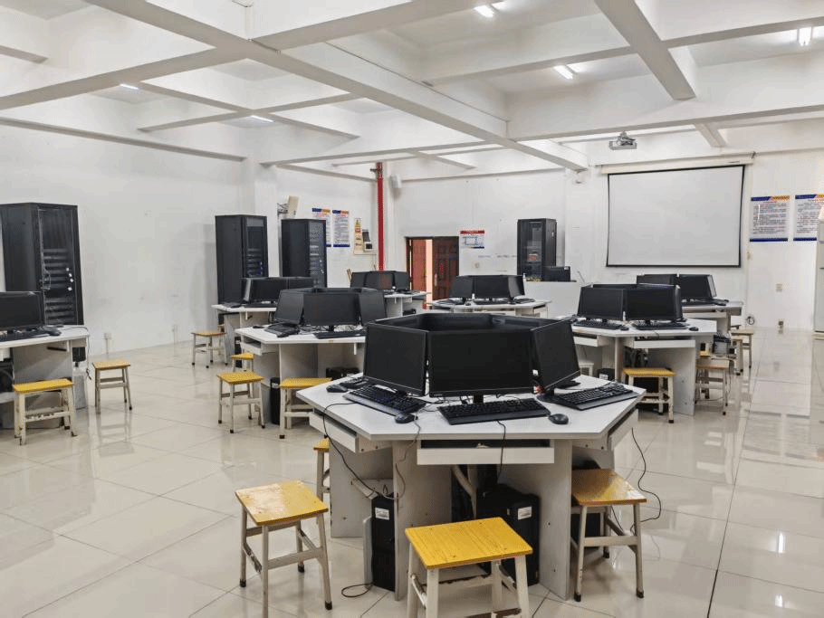 实训室软硬件配置可满足大规模并发实训与复杂网络场景搭建需求。核心配备 2 台高性能 2U 机架式服务器(双路 Intel Xeon 银牌 4210 处理器、128GB 大内存、大容量存储阵列),搭载私有云实训平台,支持 54 路并发实验、150 人同步在线学习;配置 9 台串口路由器、36 台高性能路由器、83台千兆三层以太网交换机,18 台双频 Wi-Fi6无线 AP、9 台无线接入控制器,构成完整企业级网络设备集群及实训室网络;配备 55 台高配置电脑终端(i7 处理器、32GB 内存、512GB SSD)、多媒体音响话筒系统、2 台大功率天花空调、9 张六边形实训桌、54 张学生实训椅,配套 110㎡硫酸钙防静电地板、综合布线、机柜与网络配线架等完善工程设施,支持设备集中管控、远程运维、多场景智能联动与高清教学演示。