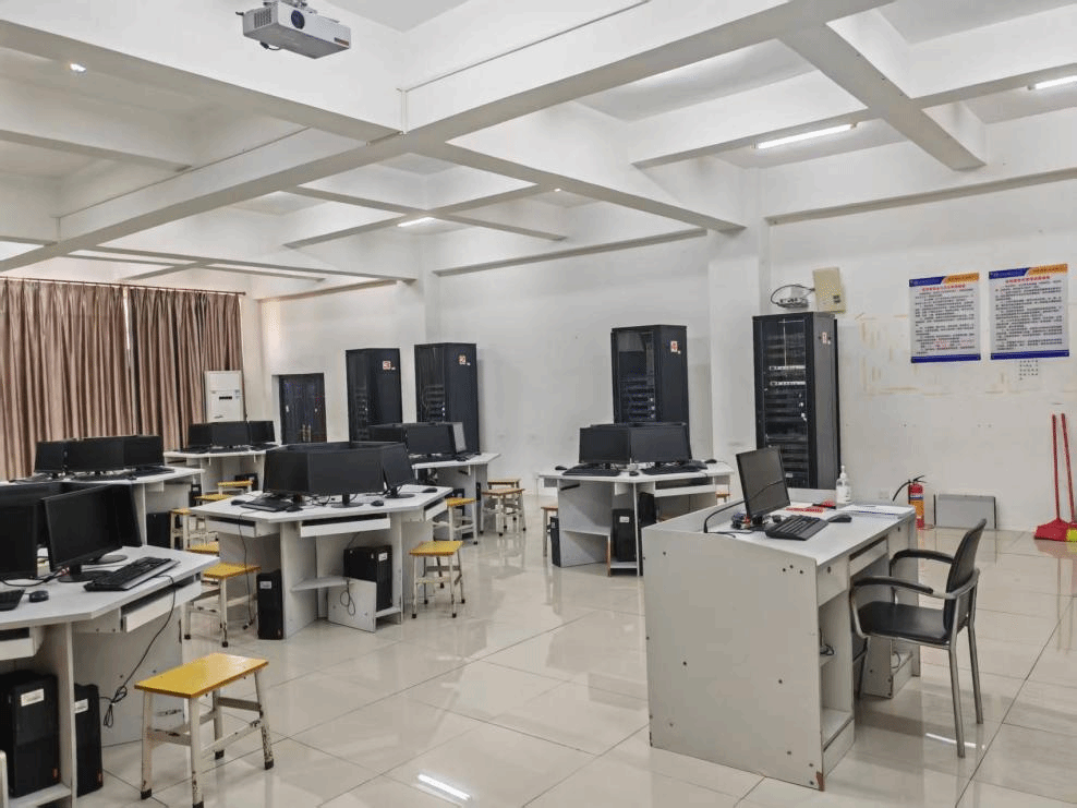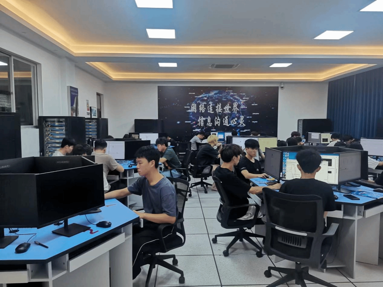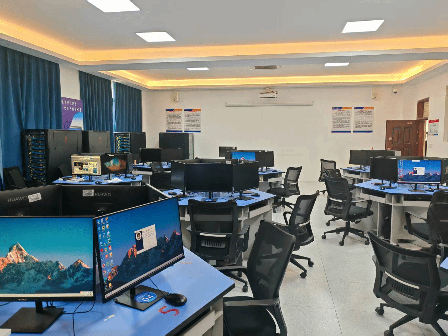 网络系统建设与运维实训室(4-406)于 2022 年 12 月建成投入使用,是海南经贸职业技术学院计算机网络技术专业与华为共建 ICT 学院的核心实训平台,支撑网络搭建、系统配置、设备调试、自动化运维等实践教学,为学生提供贴近企业真实场景的网络工程与运维实训环境,培养网络部署、运维管理核心能力。